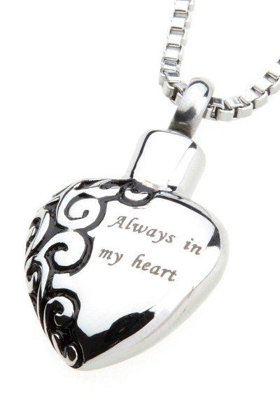 Ash jewellery, pendant with brushed finish and ash container for a symbolic amount of ashes. Complete with chain and presentation box.