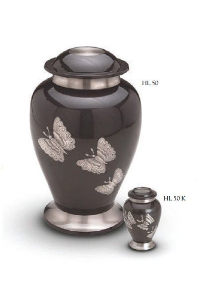 Urn set, anthracite grey, with butterflies. Protected with Gloss Coat.